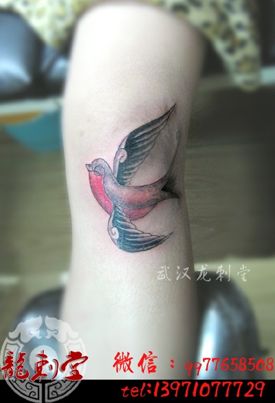 膝盖欧式燕子纹身欧美纹身school纹身图案武汉技术好的纹身店